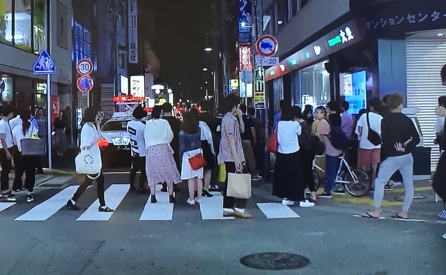 写真は騒然とする事件現場の様子です。