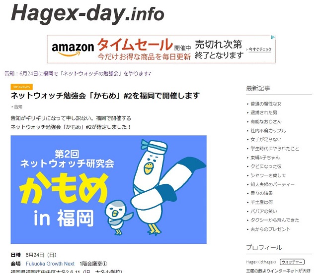 上記のWebページが、岡本さんのブログ『Hagex-day.info』に記載されている事件当日の勉強会の告知です。